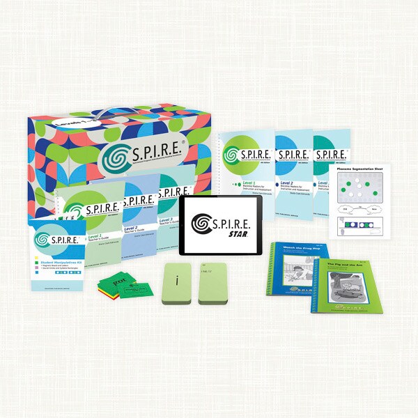 SPIRE is a comprehensive and multisensory reading intervention and instructional program that integrates phonological awareness, phonics, handwriting, fluency, vocabulary, spelling, and comprehension in an instructional design that is based upon how struggling readers learn. This program has been used throughout the country with remarkable success by thousands of elementary, middle, and high school students. This includes students with characteristics of dyslexia, Specific Learning Disabilities, or students who need direct, systematic, sequential instruction in reading.Set comes in convenient storage box SPIRE Level 1 Teacher's Guide 4th Edition SPIRE Level 1 Blackline Masters 4th Edition Illustrated Decodable Readers Sets 1A & 1B (20 Titles Total, 1 copy of each title) SPIRE Level 1 Word Cards 4th Edition SPIRE Level 2 Teacher's Guide 4th Editionv SPIRE Level 2 Blackline Masters 4th Edition Illustrated Decodable Readers Sets 2A & 2B (20 Titles Total, 1 copy of each title) SPIRE Level 2 Word Cards 4th Edition SPIRE Level 3 Teacher's Guide 4th Edition SPIRE Level 3 Blackline Masters 4th Edition Illustrated Decodable Readers Sets 3A & 3B (20 Titles Total, 1 copy of each title) SPIRE Level 3 Word Cards 4th Edition SPIRE Magnetic Phoneme Segmentation/Phoneme Grapheme Chart SPIRE Student Manipulatives Kit SPIRE 4th Edition Small Phonogram Cards Lv 1-5 (1 Set) SPIRE 4th Edition Large Phonogram Cards Lv 1-5 (1 Set) SPIRE Digital Teacher Companion (12-month Digital Teacher Companion subscription includes access to online teaching materials.) Powered by Exploros™. To activate a teacher account, you need to designate a person at your school or district who will act as an account administrator. This person will receive an e-mail with set-up instructions.